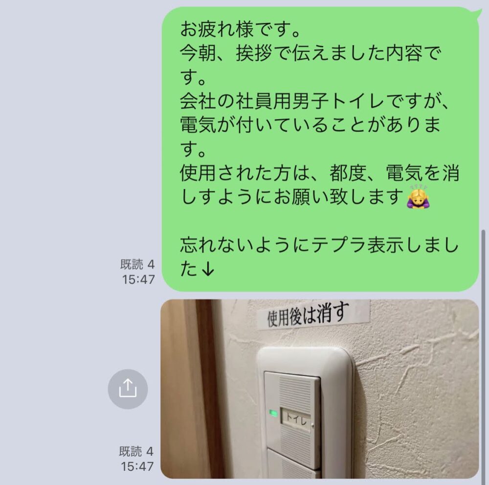 社内連絡用LINEで連絡をする。
