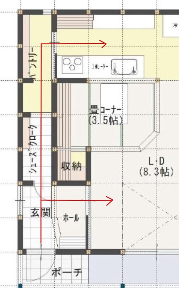 パントリー(食品庫)、キッチンの動線