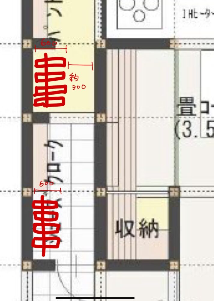 3、シューズクローゼット側の動線を
