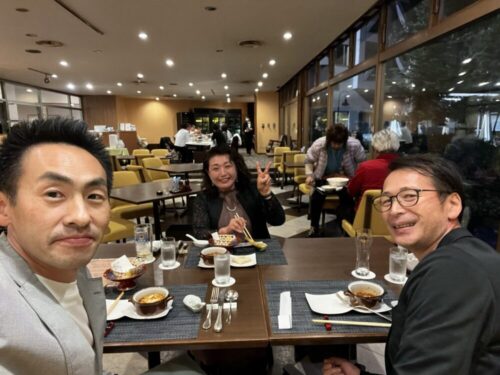 岩舘会長と僕と”ともちん”で食事会。