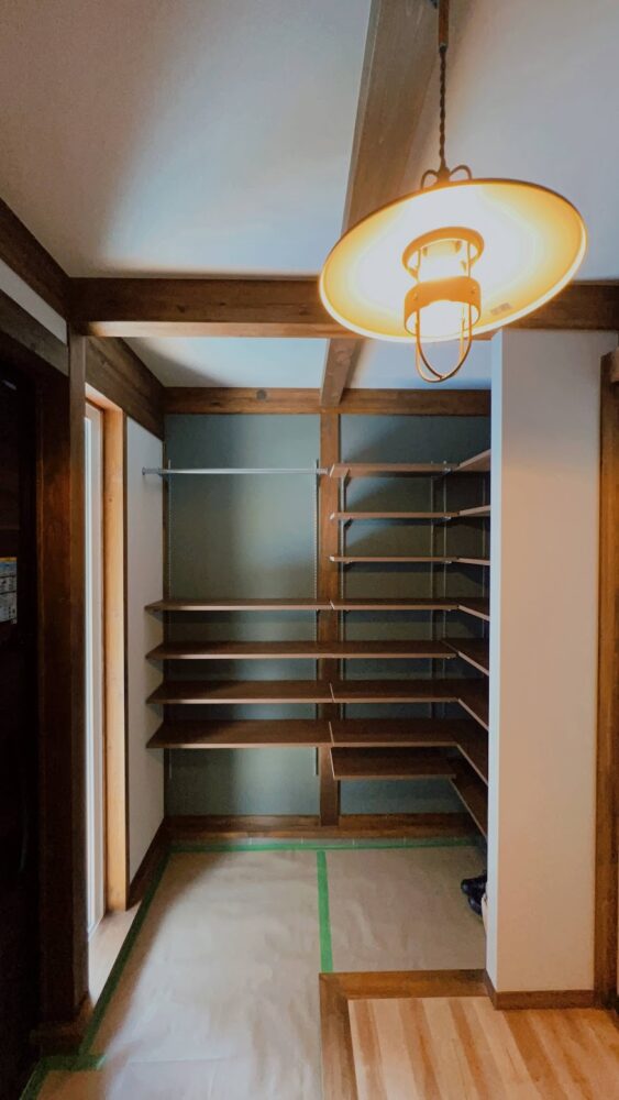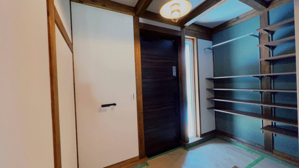 玄関扉の脇の縦長の窓から、玄関に光が差し込みます