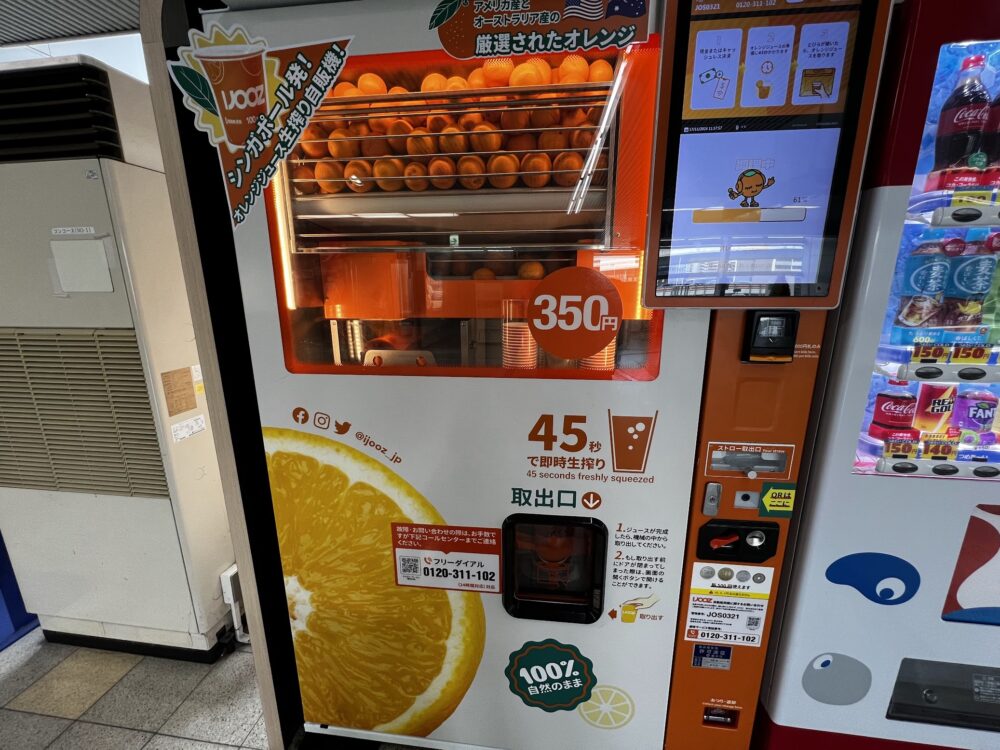 350円のフレッシュジュースの自販機。