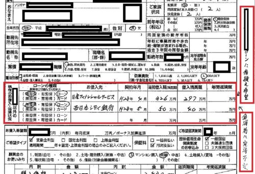 住宅ローンの申込用紙には、