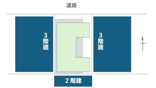 *コの字の中庭の部分を部屋にして四角にした時の価格とほぼ一緒