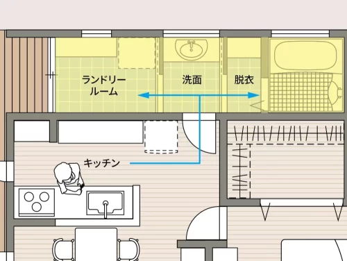 キッチンと洗面所が近いと、