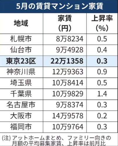 「家賃の値上がりが全国に広がる兆し。民営家賃は約28年ぶりの高い伸び」