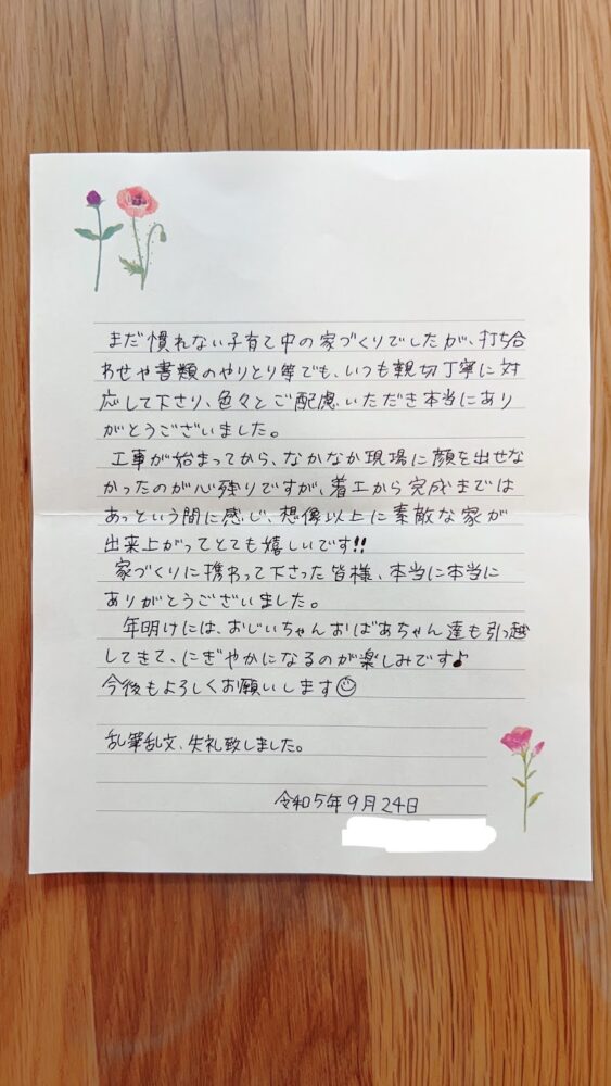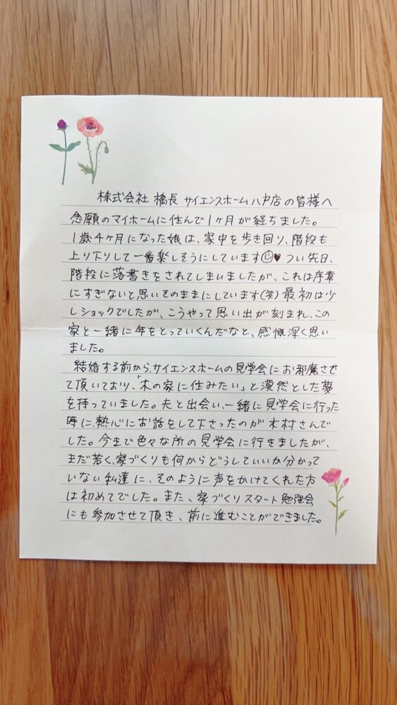お手紙もいただきました。