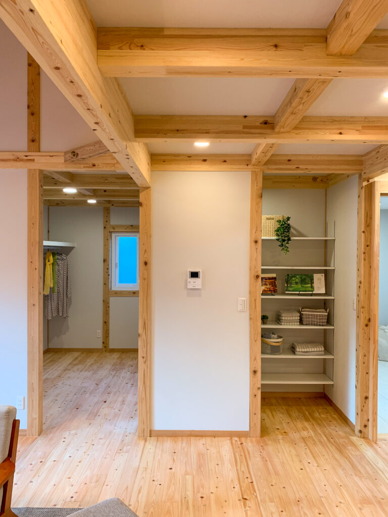 リビングに「リビング収納」、キッチンには「オープンパントリー」というように、使う場所に合わせて収納を設けています。物を使うのも元の場所へ戻すのもストレスなく、部屋が自然と片付き散らかるのも防いでくれます。