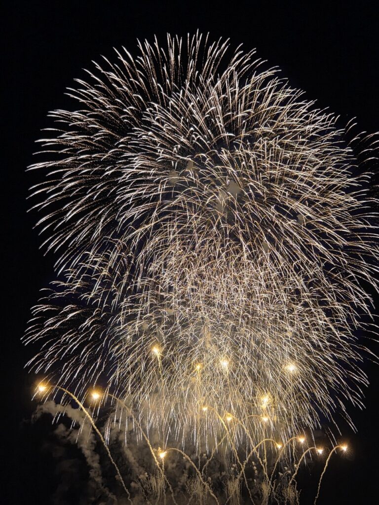 開始時間には晴れて夜空を花火が鮮やかに飾ってくれて