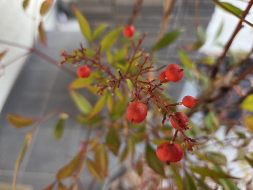 さて、うちの庭は何もできませんが数少ない南天の実が赤く色づいて