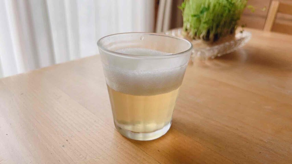 ゼリー液を強く掻き混ぜるとポリペプチド鎖が空気を含んで絡み合い細かな泡を作るそうです