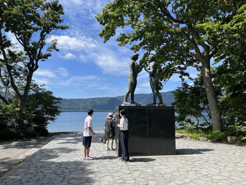翌朝は【十和田神社】を参拝、【乙女の像】では観光客が思い出写真。