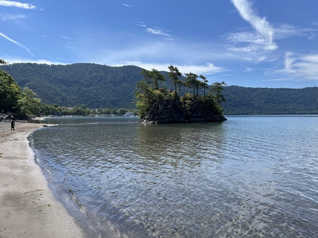 湖畔沿いをゆっくり散歩、変わらぬ十和田湖の美しさにひと呼吸できました。
