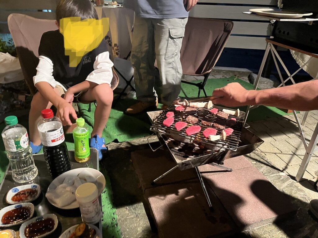 夕方は八戸に戻り、義姉家族と夜の野外バーベキュー。