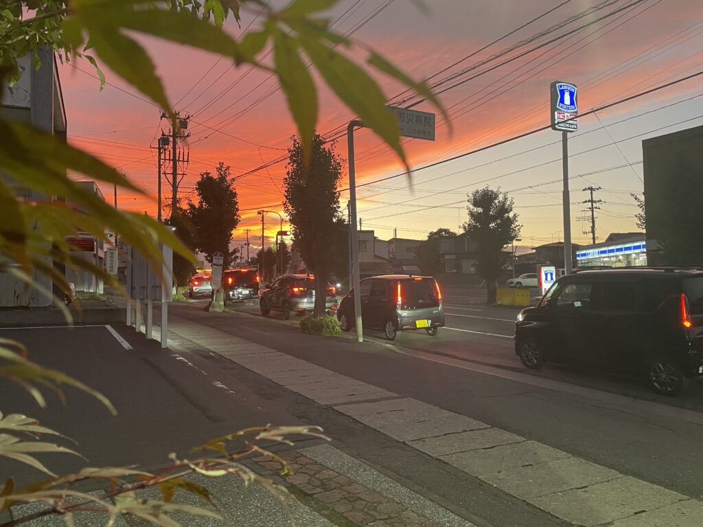 会社で美しい夕焼けを見るのは初めてだったので
