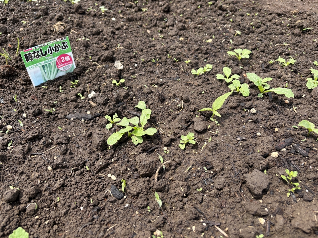前にブログに少し書きましたが、畑が大好きな息子の買った野菜の種が収穫できるまで大きくなりました。